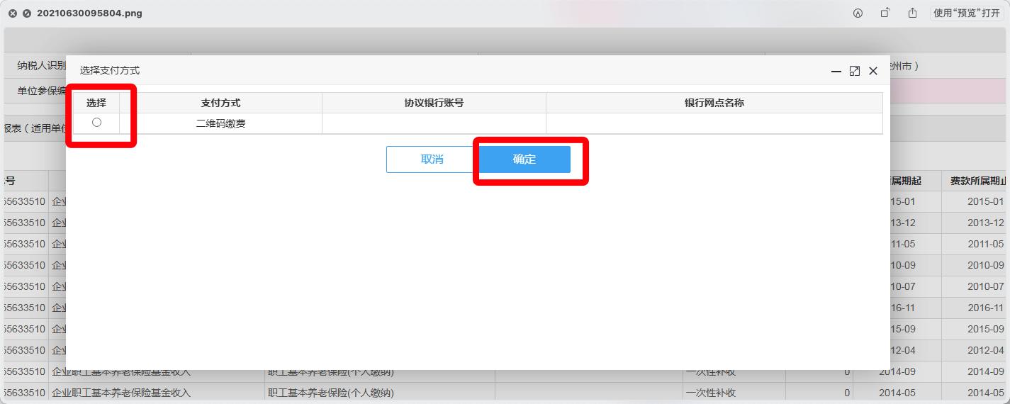 选择支付方式后,会弹出二维码缴费界面,通过手机扫码缴费后,完成缴费操作。