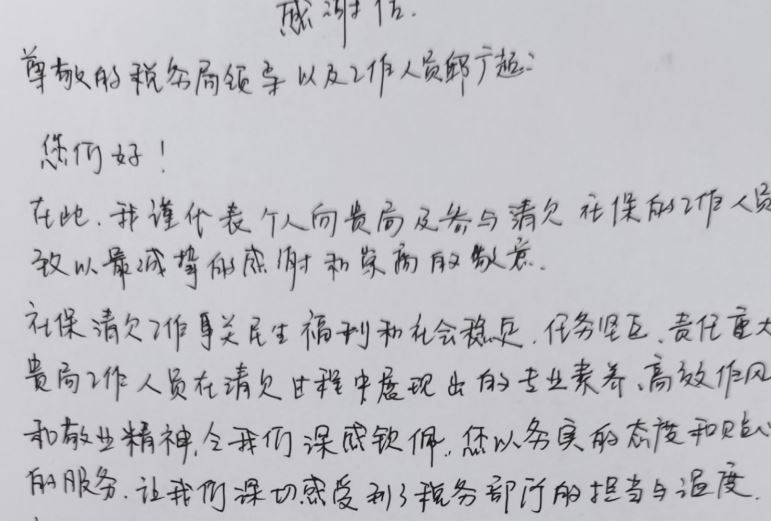 手写表扬信,不仅承载着群众的真挚感谢,更是对税务部门工作的鞭策。即墨区税务局将以这些表扬为动力,持续推进“便民办税春风行动”,用更有温度的服务赢得群众口碑,为优化营商环境贡献税务力量。
